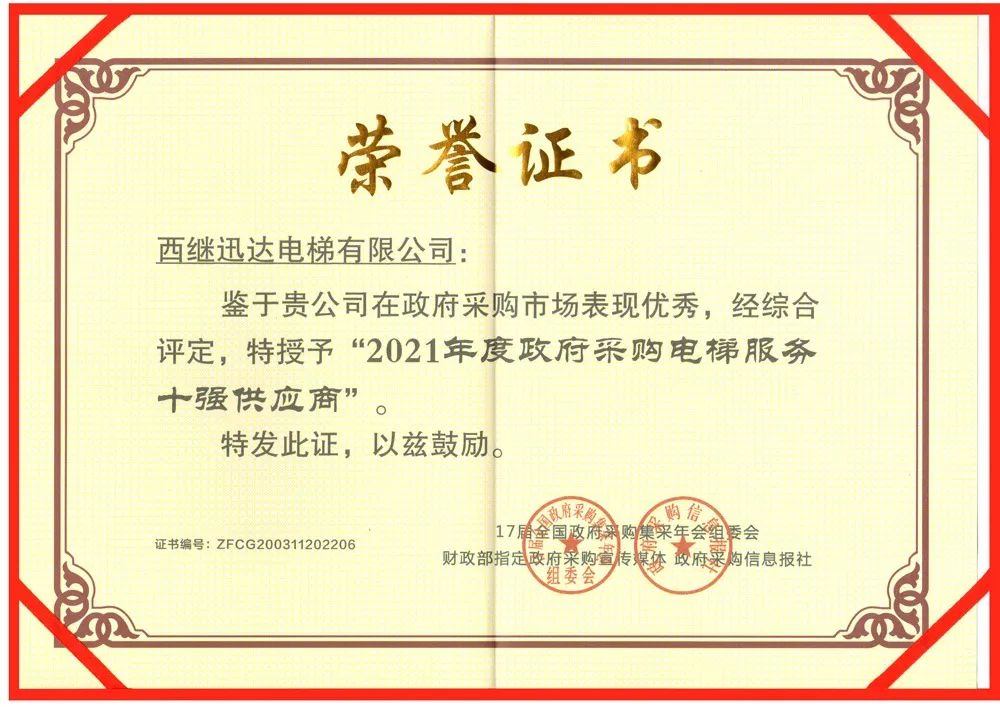 全國(guó)政府采購(gòu)電梯服務(wù)十強(qiáng)供應(yīng)商