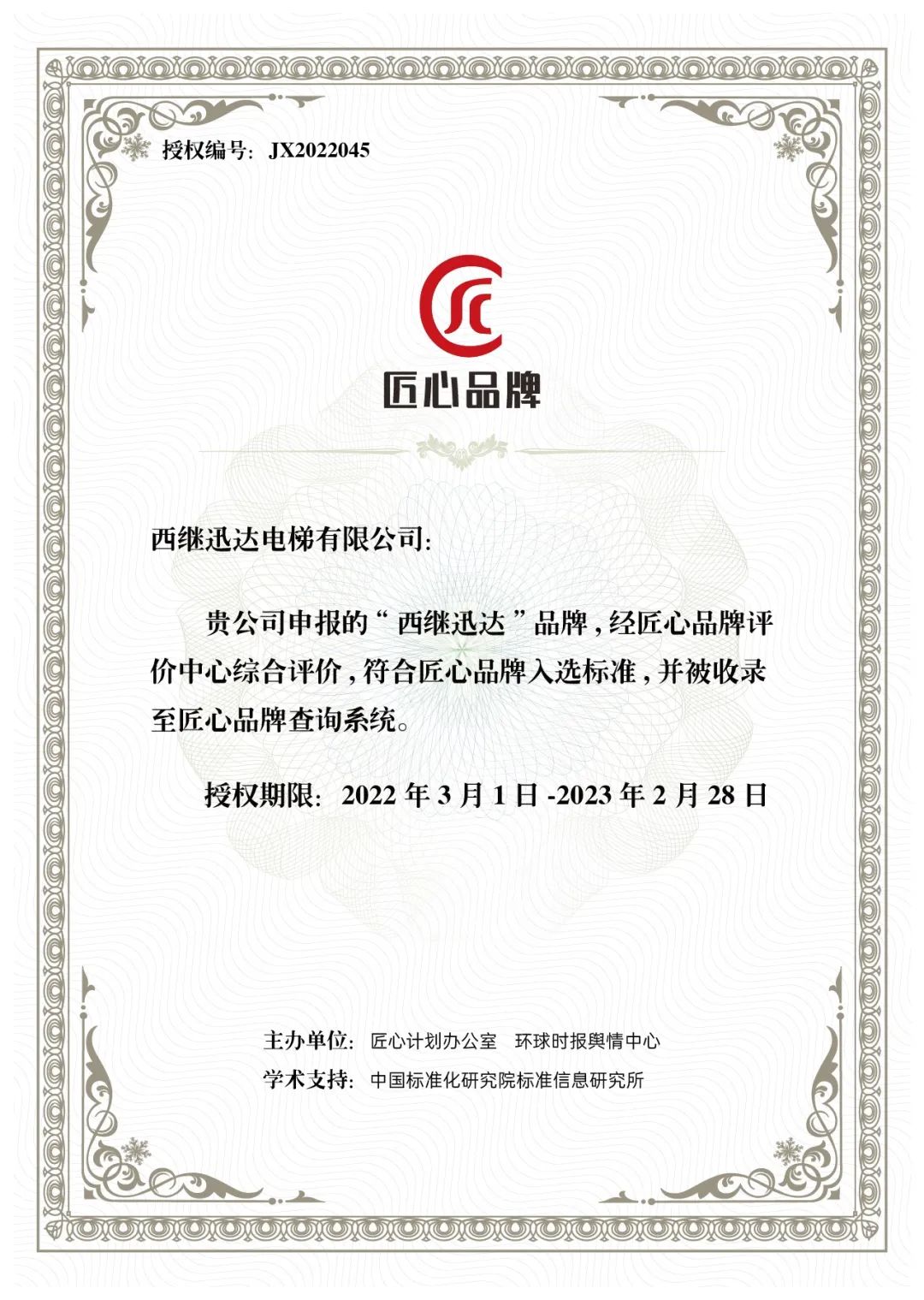 3月1日,2021匠心品牌評(píng)價(jià)結(jié)果正式揭曉,此次評(píng)選主辦方旨在尋找匠心品牌、樹立行業(yè)標(biāo)桿,引領(lǐng)行業(yè)發(fā)展。西繼迅達(dá)憑借雄厚的技術(shù)實(shí)力、良好的品牌形象、嚴(yán)謹(jǐn)?shù)馁|(zhì)量把控、完善的服務(wù)保障,從眾多優(yōu)秀品牌中脫穎而出,榮獲“匠心品牌”殊榮。