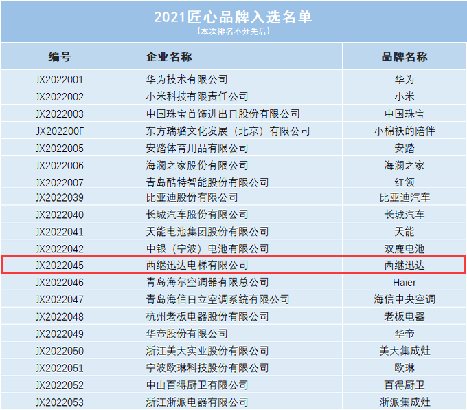 據(jù)悉,本次評(píng)價(jià)于2021年11月30日啟動(dòng),歷時(shí)三個(gè)月,共評(píng)價(jià)品牌296個(gè),該次評(píng)價(jià)涵蓋了家居建材、家用電器、工業(yè)制造等多個(gè)行業(yè)領(lǐng)域,其中122個(gè)品牌成功入選。最終,西繼迅達(dá)得到主辦方的高度肯定,與華為、小米、海爾、安踏等多家知名企業(yè)共同入選匠心品牌榜,并被收錄至匠心品牌查詢系統(tǒng)。