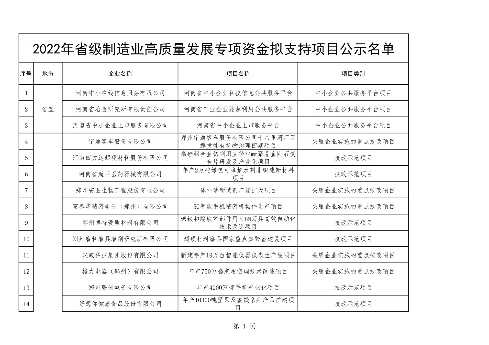 12月9日至10日,省工業(yè)和信息化廳、省財政廳聯(lián)合組織專家對2022年省級制造業(yè)高質(zhì)量發(fā)展專項資金疑似重復(fù)支持項目組織召開了專家答疑會。根據(jù)各地項目評審?fù)扑]情況,結(jié)合專家查重答疑意見,最終確定了2022年省級制造業(yè)高質(zhì)量發(fā)展專項資金擬支持項目,公示期為12月20日-26日。
