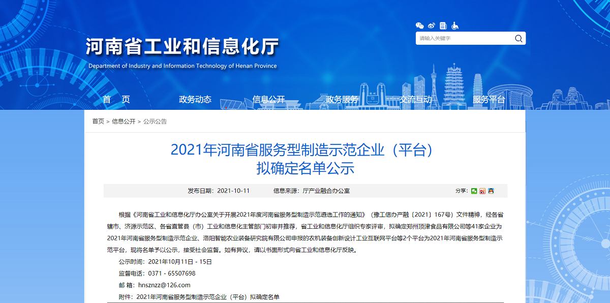 10月11日,省工信廳公示了2021年河南省服務型制造示范企業擬確定名單,西繼迅達位列此次示范企業公示名單。