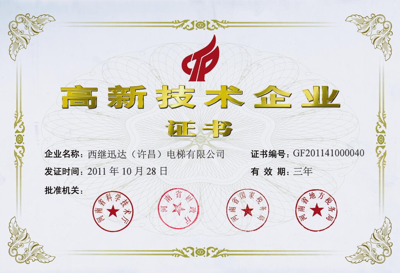2008年11月,西繼迅達(dá)(許昌)電梯有限公司首次獲評(píng)國(guó)家重點(diǎn)支持的高新技術(shù)企業(yè)。三年來(lái),西繼迅達(dá)電梯公司各方面都取得了長(zhǎng)足的發(fā)展,企業(yè)充分發(fā)揮高新技術(shù)企業(yè)的優(yōu)勢(shì),進(jìn)一步規(guī)范各項(xiàng)管理工作,把科技創(chuàng)新、開(kāi)拓市場(chǎng)放在首位,逐步擴(kuò)充企業(yè)產(chǎn)品科技含量,提升企業(yè)整體核心競(jìng)爭(zhēng)力,不斷為客戶(hù)提供優(yōu)質(zhì)的產(chǎn)品和高效的服務(wù)。