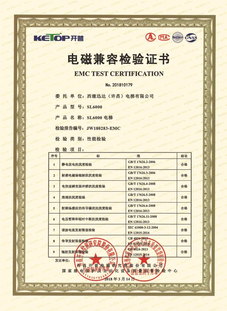 3月14日,西繼迅達(dá)SL6000系列客梯、S5000系列客梯,整梯順利通過電磁兼容EMC檢測,符合歐洲EN12015、EN12016標(biāo)準(zhǔn)。