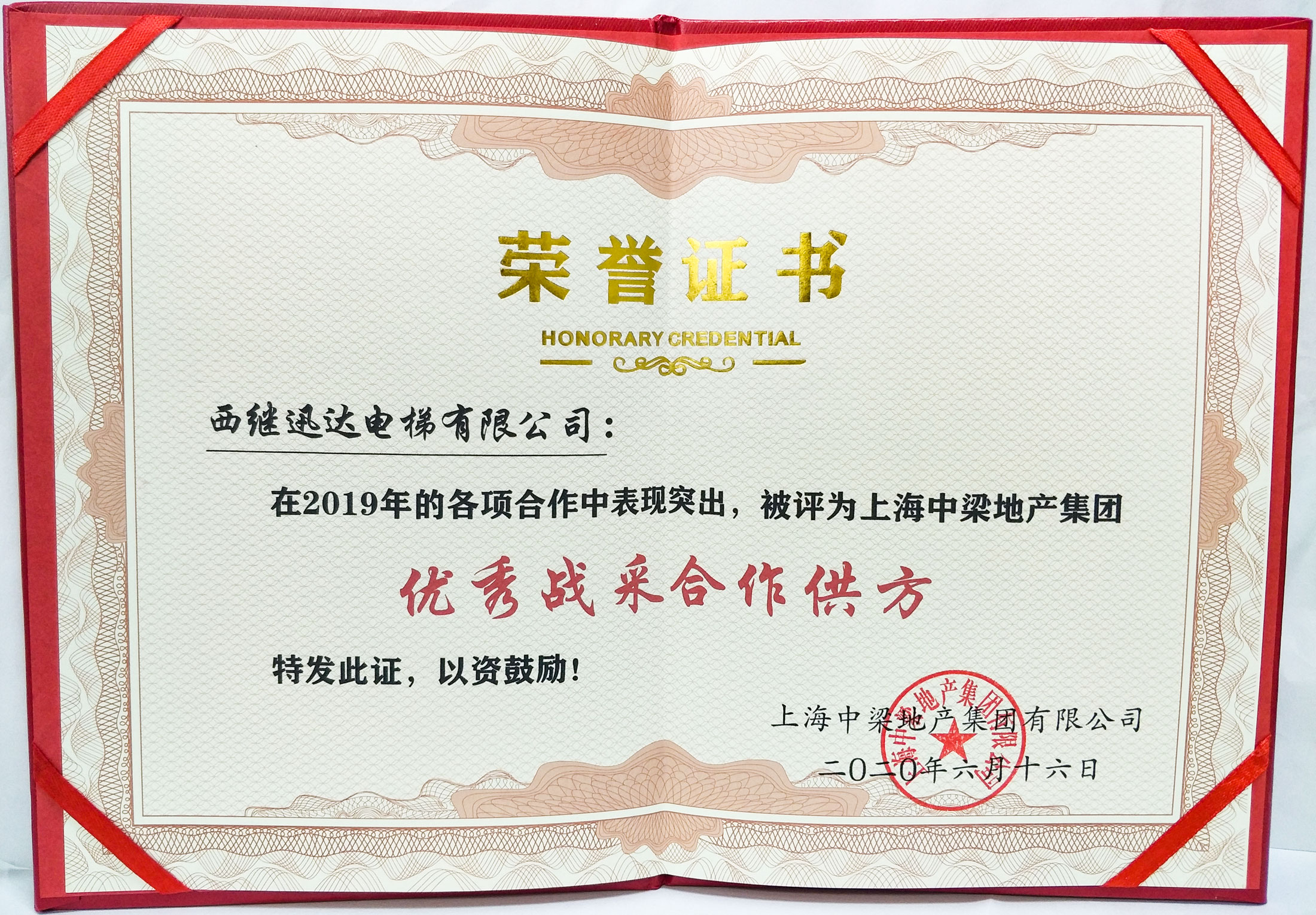 2019年,中梁地產(chǎn)集團(tuán)本著“客觀、公平、公正、實(shí)事求是”的原則,對(duì)在履約中的總包、分包、材料供貨、工程服務(wù)類等合作供方,進(jìn)行了多次全方位的履約評(píng)估。參評(píng)供方包含參與建設(shè)中梁地產(chǎn)集團(tuán)2019年度在建項(xiàng)目的逾2300家供方,共計(jì)逾6000份合同。此次共有121家榮獲中梁地產(chǎn)2019年度優(yōu)秀戰(zhàn)采合作供方,其中材料設(shè)備類有74家,西繼迅達(dá)電梯榜上有名。