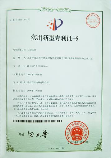 公司自動(dòng)扶梯獲國(guó)家實(shí)用新型專利證書