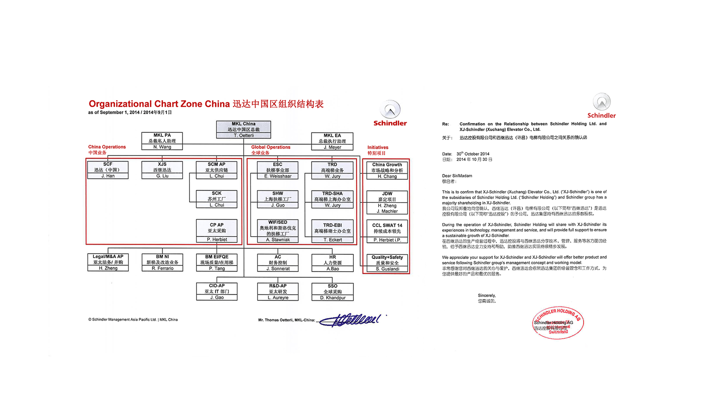 In 2011, XJ established a joint venture with Switzerland Schindler.